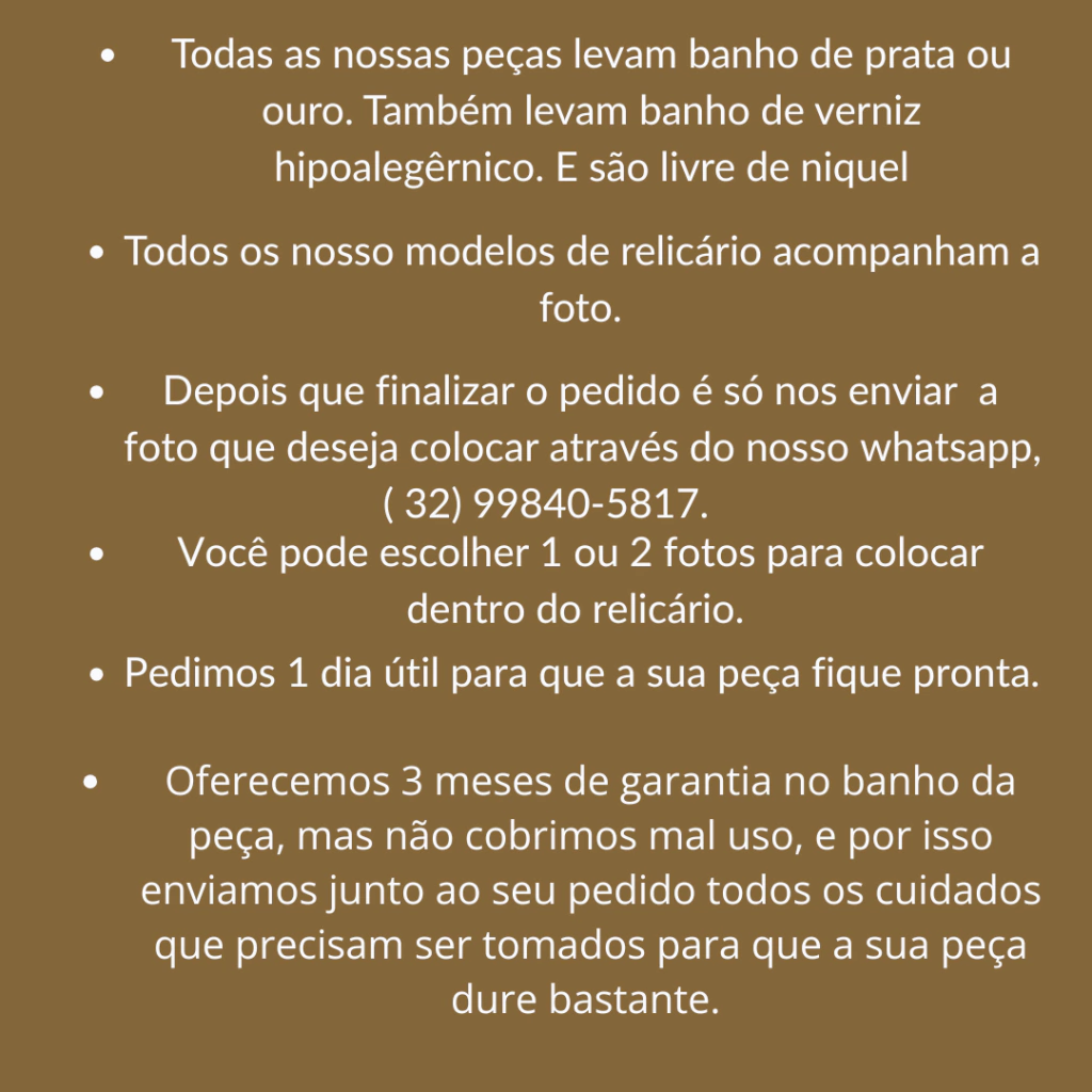 Nosso relicário é uma ótima forma de eternizar pessoas, sentimentos e momentos. É forma mais linda de presentear ou se presentear.